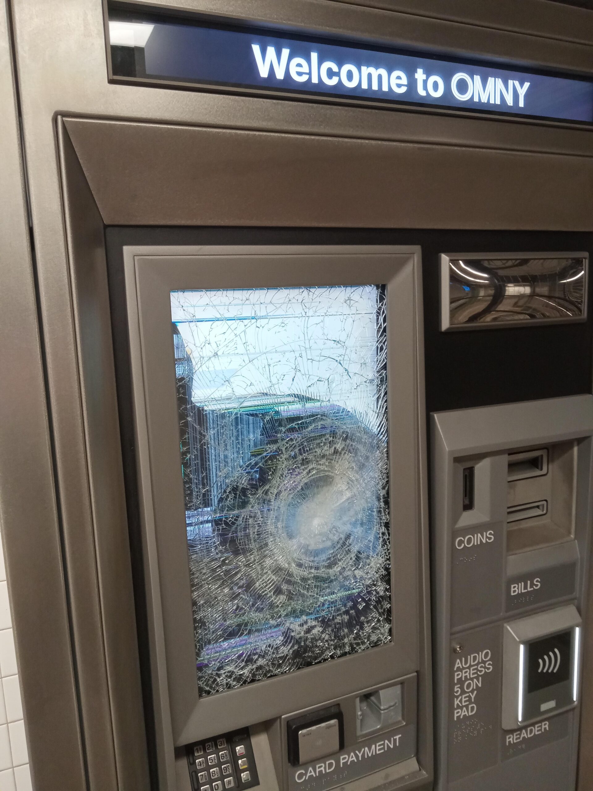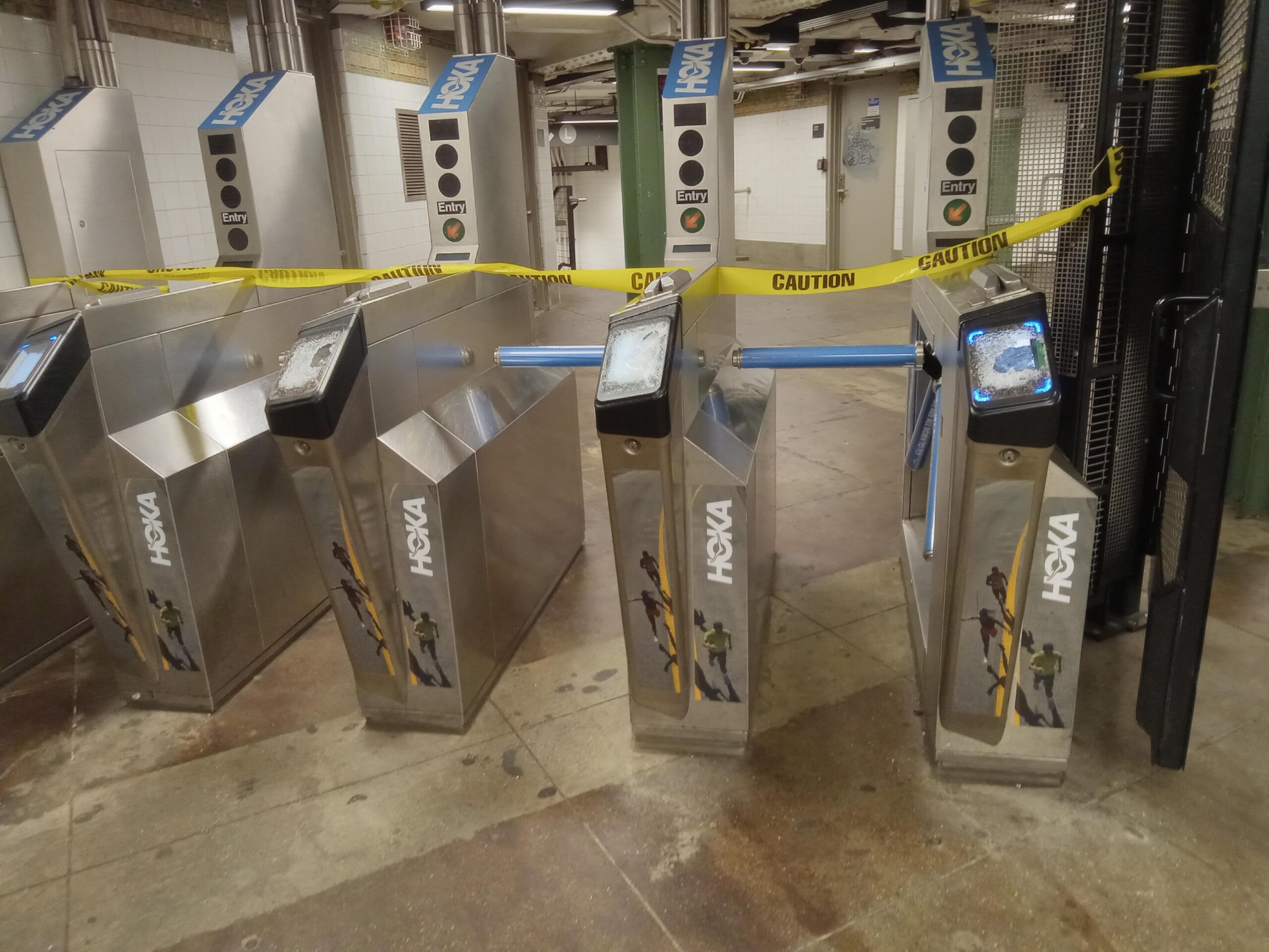 Monday night at the Bedford Ave L train station in Brooklyn, we smashed 8 OMNY readers, 1 OMNY machine, and 2 MTA machines. We made the fare FREE because they had to open the emergency door to let people in. This is in direct response to the L train mass shooting committed by NYPD, when they shot Derrel Mickells and two bystanders over $2.90, in a Black neighborhood under militarized police occupation. New Yorkers say enough is enough and fuck your fare.