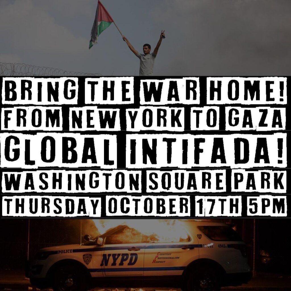 FREE PALESTINE! STOP COP NATION! FREE THE PEOPLE! FREE THE LAND! BRING THE WAR HOME!