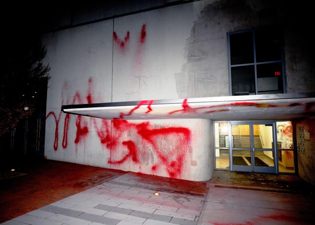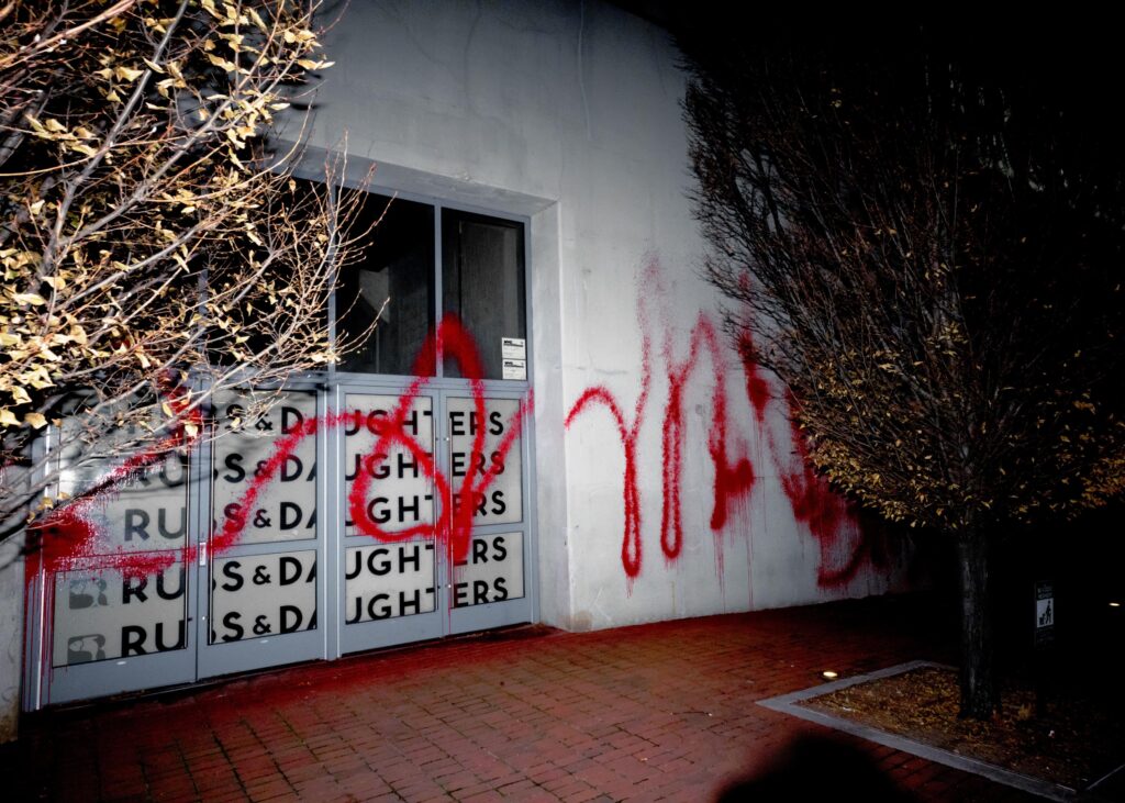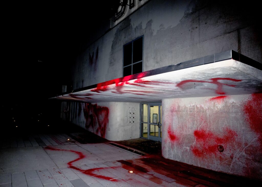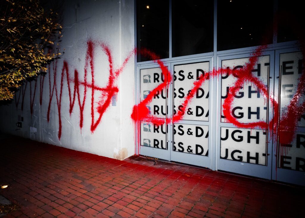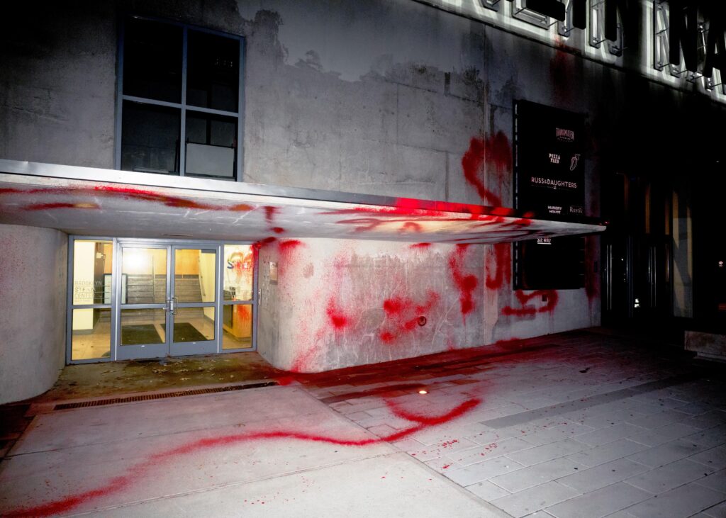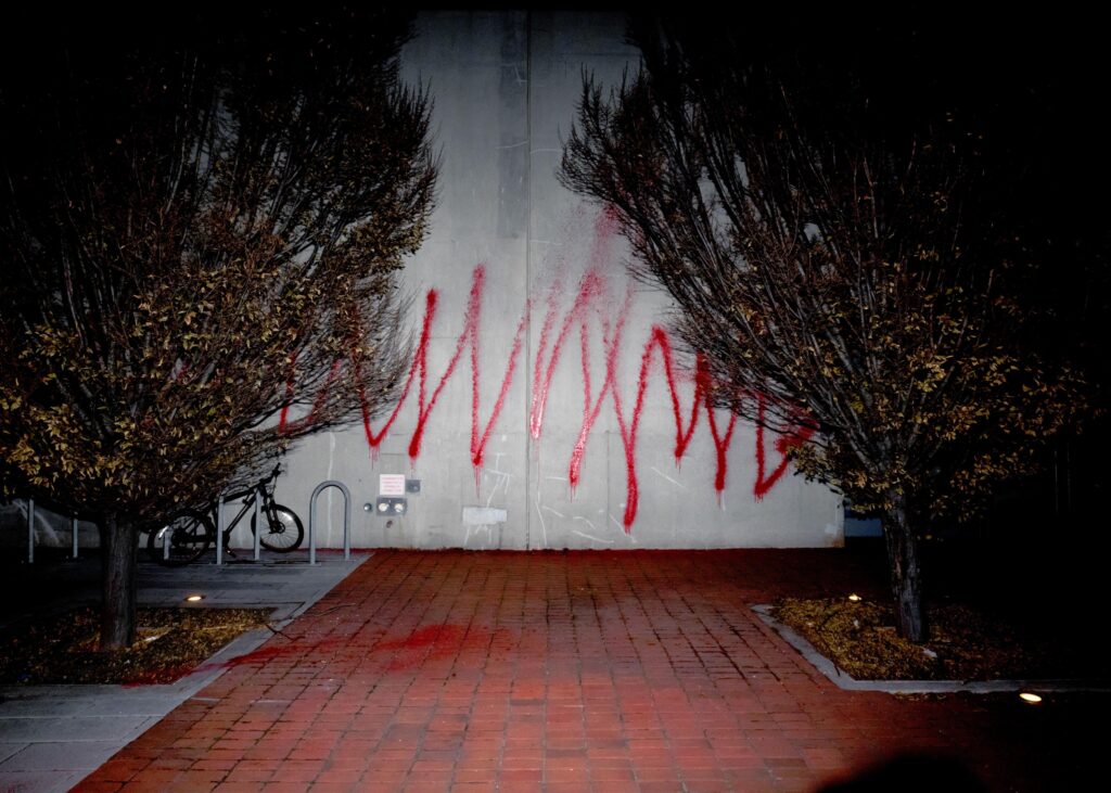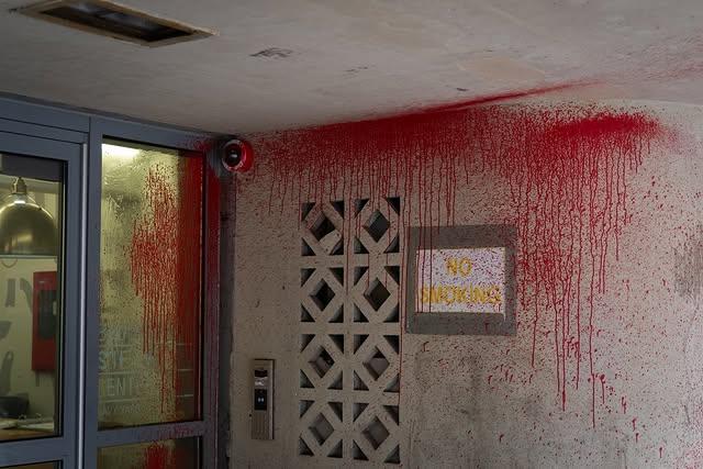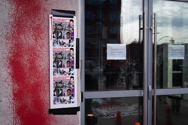 Brooklyn Navy Yard has been redecorated for the 4th time this year. Decorators visited late on Tuesday night, the 38th anniversary of the First Intifada, which was the night before the December 10 board meeting, and @demilitarizebklynnavyyard’s weekly picket and noise demo.