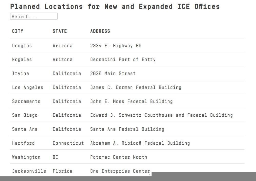 Records reviewed by WIRED show that the ICE surge team has successfully found spaces for ICE across the country. In addition to expanding previously held ICE offices, it has moved or is moving ICE into new buildings, or into space the government controlled under the terms of existing leases, in almost every US state and major city.