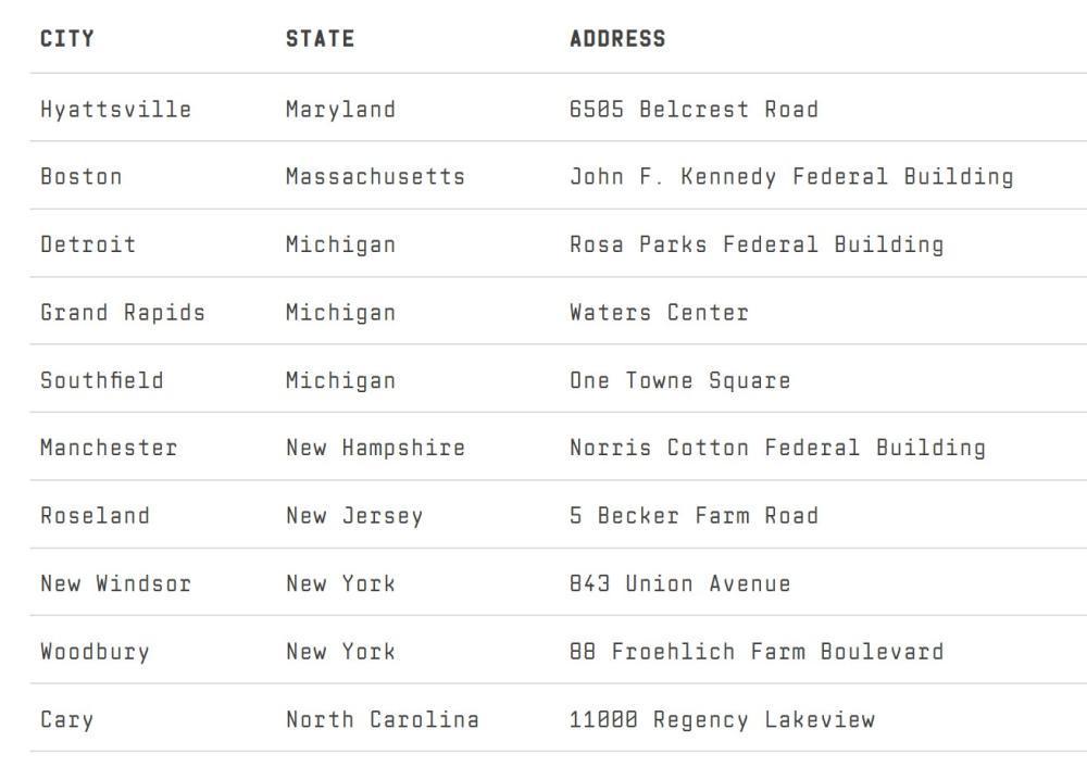 By September 29, GSA had already awarded leasing projects, and the ERO division at ICE had sent the ICE surge team a list of requirements for specific leasing locations, including sally ports—a secure entryway system with interlocking doors used by military troops, prisons, and police stations—and other security measures. ICE also came to GSA with a specific request: that any new location be within a 10-mile radius of an existing ERO facility.